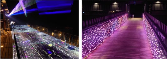 通常営業終了後の17時から20時まで営業時間を延長し、夜も楽しめるコンテンツを展開します。昼間は白馬三山に対峙する絶景が話題のHAKUBA MOUNTAIN HARBOR(白馬マウンテンハーバー)では、イルミネーションを実施。また、特設ステージが位置する山頂エリアのスカイアーク前では花火の打ち上げを行う予定です。夜ならではの山の迫力を感じられる、ナイトイベントを存分にお楽しみください。