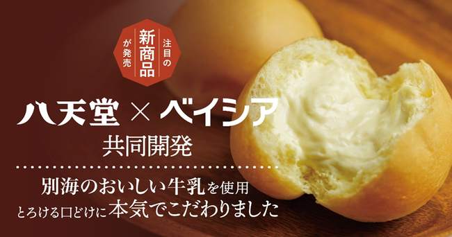 株式会社ベイシア(本社:群馬県前橋市、代表取締役社長:橋本浩英)は、株式会社八天堂(本社:広島県三原市、代表取締役:森光孝雅、以下「八天堂」)との共同開発商品「ベイシア 別海のおいしい牛乳使用 くりーむパン」を、1月10日(月・祝)よりベイシア全店にて新発売いたします。今回の共同開発は、八天堂のくりーむパンでは“初”となる他社のプライベートブランド商品を製造する取り組みです。カスタードクリームには当社の大人気商品「別海のおいしい牛乳」を使用。牛乳の味わいとくちどけ感にこだわり抜いたくりーむパンは、ベイシアでしか味わえない完全オリジナルの別注品です。お子様から大人まで、“もう1個食べたくなってしまう”こだわりのくりーむパンをぜひお試しください。