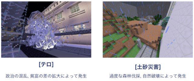 こうした状況において、「冬休みにマイクラでSDGsを学ぼう!」は、主体的に国の運営に関わる中で、国を運営する仲間同士や国家間の対立、エネルギーの使用と温暖化などといった世界に起きている様々なコンフリクトを、自分ごととして体感することができる内容になっています。