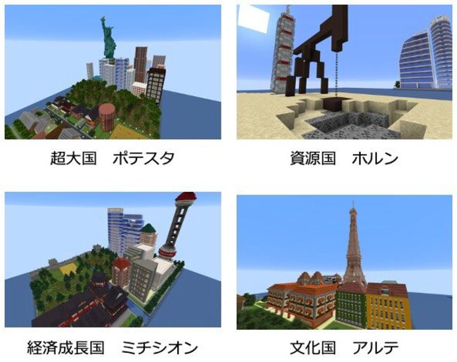 ●プログラム内容:Minecraftの世界の中に作られた国をチームで運営し、自国と世界全体の発展を目指す