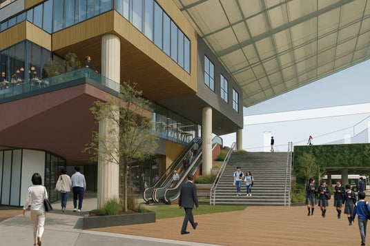 駅前南コンコースに大階段等を設け、「近畿大学病院・近畿大学おおさかメディカルキャンパス」(昨年11月開設)や堺市施設「ビッグバン」等につながる2階レベルへの動線を整備し、南海電鉄の新建物とデッキを接続することで、くすのき広場を活用した賑わい空間と、回遊性が高いウォーカブルなネットワークを構築します。具体的には以下のとおりです。