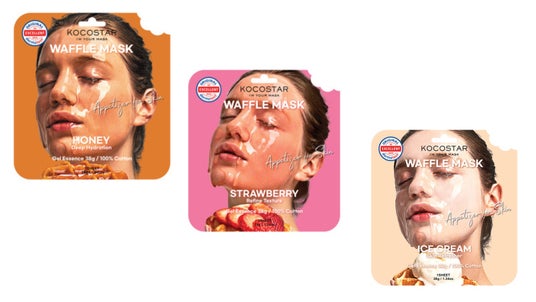 ワッフルによく添えられている3種類の食べ物からヒントを得た全身美容液のケアを叶えるマスク