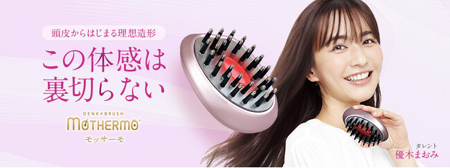 以下は、優木まおみさんがあごに手を当てたポーズをとっている画像を活用し、電気ブラシを持っているように見える広告を制作した事例です。風になびいているような髪の毛の動きや商品を持つ手は、合成技術によって生み出されています。