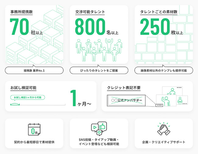 ~4万点以上の有名タレント宣材素材が安価に最短1ヶ月から利用可能!クリエイティブコンサル付で認知獲得・売上拡大をサポート~
