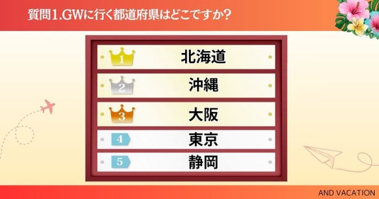そこで今回の調査では、GWに行く都道府県をアンケートで聞き取り調査をしました。ぜひ、チェックしてみてください。