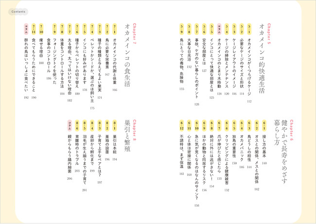 オカメインコがもつさまざまな魅力と、知っておきたい情報を詳しく解説しています。巻末には、体の部位、心配事などのキーワードから逆引きできる便利な索引付き。オカメインコと暮らす毎日に、ぜひお役立てください。