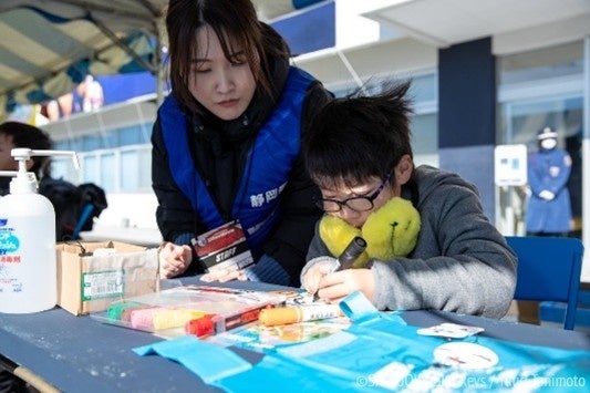ぬりえ反射板コーナー開幕戦のスタジアム広場では