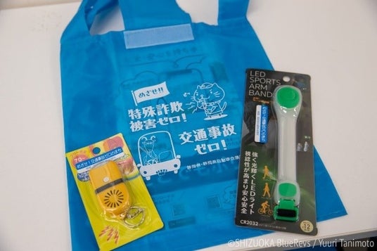 静岡ブルーレヴズはこの度、交通事故防止啓発活動の「ピカッと作戦!」に賛同・協力し、オリジナル反射材ストラップを製作いたしました。