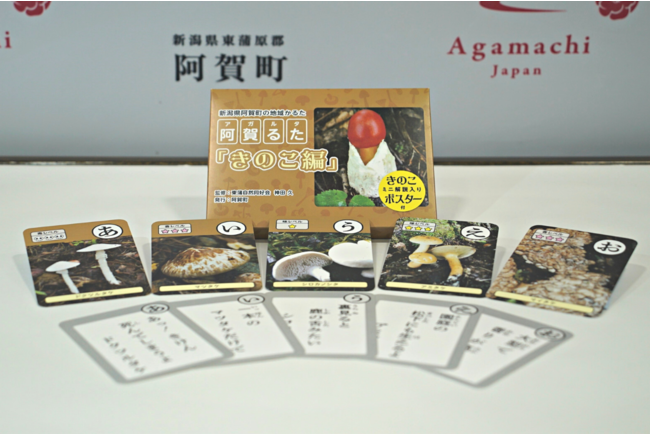 また、ミニ解説入りポスターが同梱されており、学習机やカレンダーの脇、トイレの壁などに貼れば、きのこ博士にもなれるかもしれません。このカルタは9月19日から販売。価格は税込1,500円。お求めは阿賀町にある「道の駅 阿賀の里」「阿賀町観光協会」へお願いします。