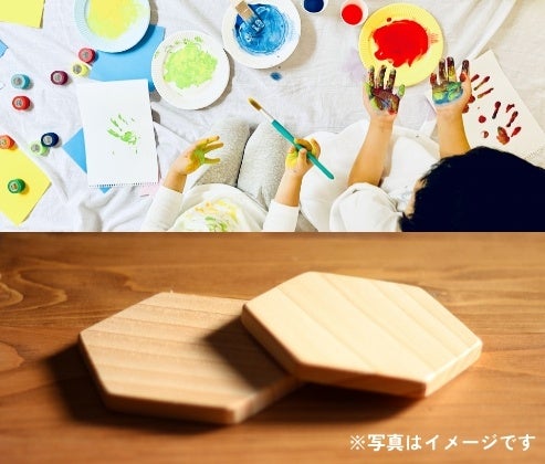 フローリングなどの内装材として使われる無垢材を再利用したコースターの色塗り体験ができます。環境にも配慮した体験型ワークショップでぜひ夏休みの工作にもご活用ください!