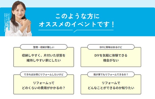 当社は、「暮らしにアートリフォームを 人生にアートリフォームを」というミッションのもと創業から70年間、住宅のリフォームやリノベーションによって、豊かな暮らしと人生を提供しております。一方で、リフォームやリノベーションを行うことは、日本においてはまだまだハードルが高く、気軽に行えるものではありません。リフォームのハードルを下げ、服のコーディネートや家具の交換と同じような感覚でリフォームが行われるようにするためには、積極的に施工事例やリフォームのノウハウを公開し、『暮らしの質の向上』の手段としてリフォームの価値を広く伝えることが必要です。そうすることが、ミッションの実現につながると考え、この度イベントを開催する運びとなりました。