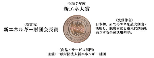 株式会社Sustech(東京都港区、代表取締役:丹野裕介・飯田祐一郎/以下、Sustech)は、一般財団法人 新エネルギー財団が主催する「令和7年度新エネ大賞」において、「新エネルギー財団会長賞」(商品・サービス部門)および「ベンチャー企業特別賞」を受賞いたしましたことをご報告させていただきます。当社が提供する「AIを活用し、再生可能エネルギーの最大創出・最大活用を実現する“余剰電力活用型コーポレートPPA”」が、日本の再エネ導入拡大と脱炭素社会の実現に大きく貢献する先進性と独創性を高く評価されたものです。