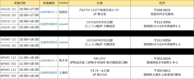 ※開催場所の調整状況や新型コロナウィルスの感染状況等により、「出張申請受付」及び「出張申請サポート」の開催を中止・延期、または実施内容が変更となる可能性がございます。