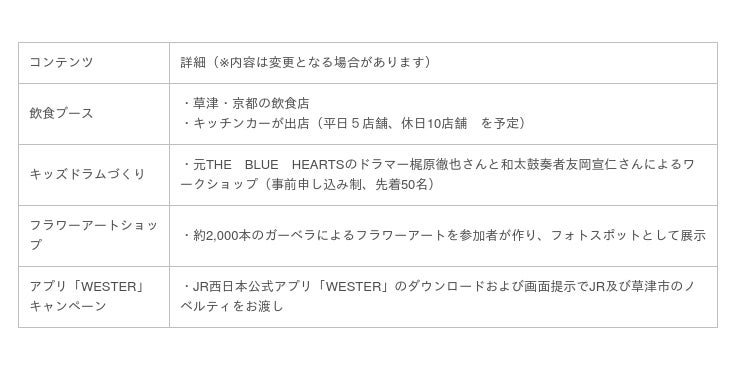 西日本旅客鉄道株式会社(以下「JR西日本」という。)が梅小路京都西駅の設置に伴い廃線となった梅小路短絡線(山陰連絡線)を賑わいの場として高架状の屋台ストリートに生まれ変わらせた「梅小路ハイライン」と、草津市が国の治水事業により廃川となった旧草津川の跡地を緑あふれる市民の憩いの場として生まれ変わらせた「草津川ハイライン(草津川跡地公園 de愛ひろば)」は、ともにニューヨークハイラインをモデルに整備したことから、両施設の更なる利用促進と地域の活性化、鉄道利用の促進について協力することを目的に2020年12月に「地域資源を活用した駅前まちづくりに関する協定」を締結しております。このたび、本協定に基づく連携イベントとして、下記の通り開催しますので、お知らせします。