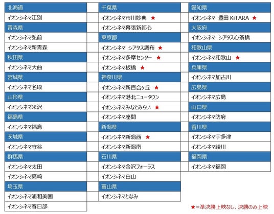 全国のイオンシネマ26劇場(準決勝)、35劇場(決勝) ※劇場一覧参照