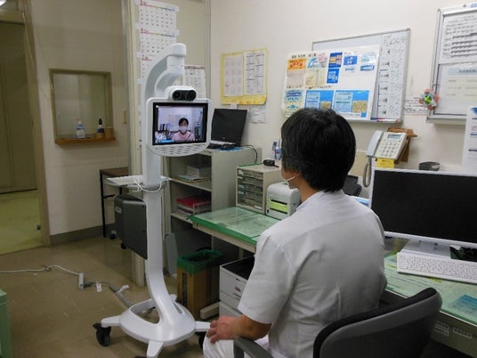 十日町病院の看護師が、松代病院にあるリアルタイム遠隔医療システム「Teladoc HEALTH」に接続している様子(※新潟県病院局提供)