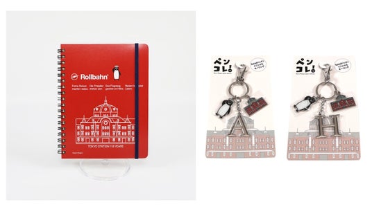 ポケット付メモ L 東京駅」の復刻版や、イニシャルキーリング(8種類)の2商品です。
