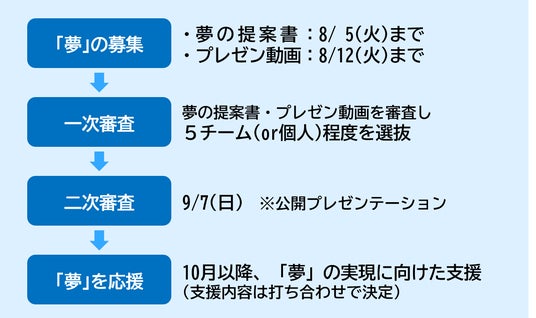 (図)事業のおおまかな流れ。「夢」の支援は10月以降に実施される予定。