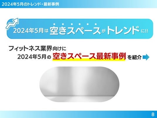 本レポートは、空きスペースを活用した事業に関する、2024年5月時点の最新トレンド及びフィットネス業界向けの新規事業に関する情報について紹介しています。