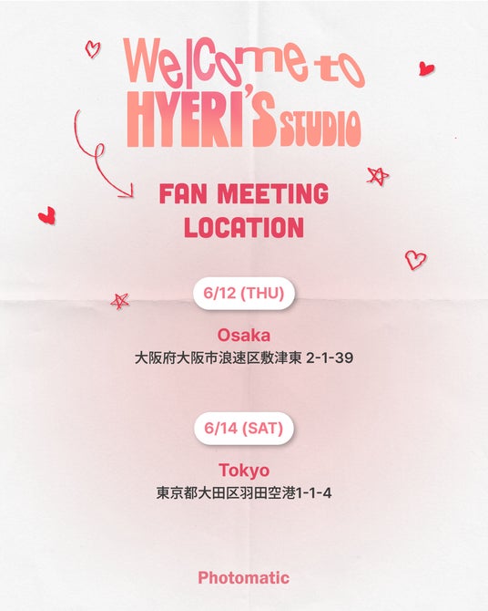 なお、東京・大阪で開催するファンミーティング「2025 HYERI FANMEETING TOUR <Welcome to HYERI’s STUDIO>IN JAPAN」にもHYERIスペシャルフレーム4種が撮影できるPhotomaticを設置します