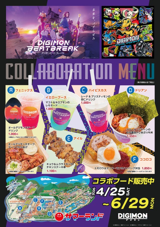 東映アニメーション株式会社(本社:東京都中野区、代表取締役社長:高木勝裕)は、TVアニメ「DIGIMON BEATBREAK(デジモンビートブレイク)」および人気デジモンが集結した「オールデジモン」と、東京サマーランドのコラボイベント「さまらん×デジモン2026プレサマー」の開催が決定いたしましたことをお知らせいたします。本イベントでは、オリジナルノベルティ付きのコラボフードの販売や、デジモンの楽曲に合わせてスプラッシュが楽しめるスペシャルコラボ「ビーチスプラッシュ」、迫力満点の園内装飾など盛りだくさんの内容でお届けいたします。
