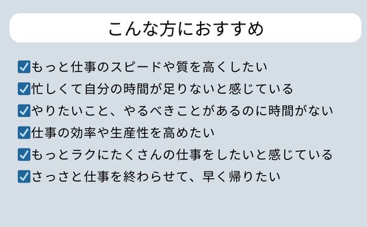 これにより、仕事の質が向上し、無駄なストレスが減り、最終的には自分の時間を増やすことができます。
