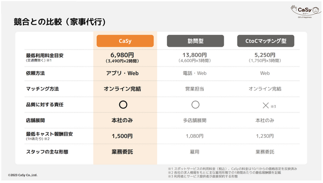 そんな地域にCaSyとして家事代行サービスを展開させて頂けることを大変嬉しく思います。既に「顧客」「キャスト」双方から事前の申し込みをいただいていることからも、強いニーズを実感しております。