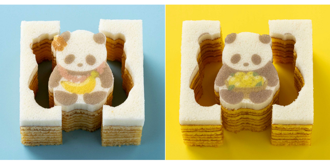 カタヌキヤのバウムは、平焼きバウム。生地を一層ずつ丁寧に焼き重ねて、軽やかなのにしっとりとおいしいバウムをおつくりしています。その一番うえにメレンゲ仕立ての真っ白生地をあわせたら、パンダのかたちにきれいに切りぬいて、夏らしさ満点のパンダたちをプリント。まわりの生地をそっと外すことで、パンダのシルエットに型ぬきが楽しめるようになっています。