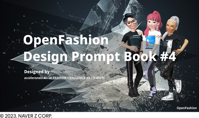 掲載されたデザイン38作品は全て今年7月に開催し、デザイン総数が6,400を超えたファッションデザインコンテスト「accelerando.Ai - AIファッションチャレンジ #3」の受賞作品です。8月にはこれらの受賞作品をプリントした「プロンプトTシャツ」が、人とAIが創る未来のファッションブランド「accelerando.Ai(アッチェレランドドットエーアイ)」よりリアルとデジタル(※)で同時発売となりました。