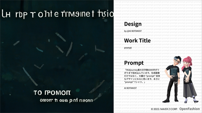 株式会社OpenFashion(本社:東京都港区、代表取締役:上田徹、以下OpenFashion社)は、画像生成AIで作成したファッションデザインを集めた「OpenFashion Design Prompt Book #4」を発表しました。「OpenFashion Design Prompt Book #4」は全て無料でご覧いただけるほか、掲載作品をデザインした「プロンプトTシャツ」をリアルとデジタルの両方で着用可能なアイテムとして販売中です。