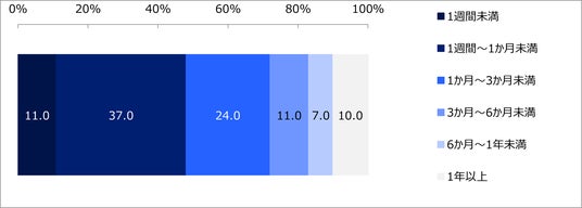 Q15.お子様が歯列矯正を受ける歯科医院を調べ始めてから、初めてお子様が歯科医院を受診するまでにかかった時間を教えてください。※歯列矯正したお子様が複数いらっしゃる場合は、直近の状況についてお答えください。