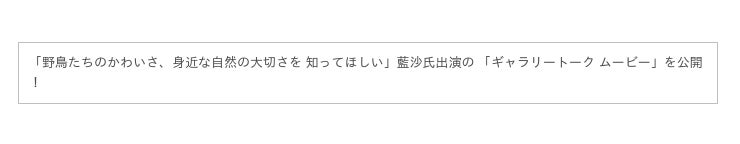 企画展名:【写真家たちの新しい物語】 藍沙(あいしゃ)写真展「東京の野鳥たち」