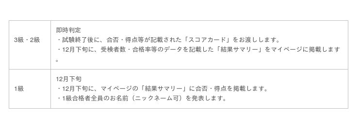 ※1級に関しては、同日同時刻一斉開催で、受検者全員が同一問題となります。