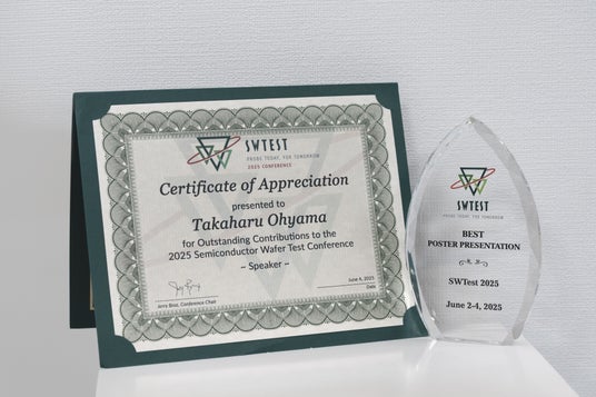 この国際会議は、最新のプローブカード、プローブ装置、および関連サービスを提供するトップサプライヤーが集まり、最新の技術開発について業界のリーダーと意見交換が行われる場になっており、このような場で「Best Poster Presentation賞」を受賞したことは大変名誉なことです。