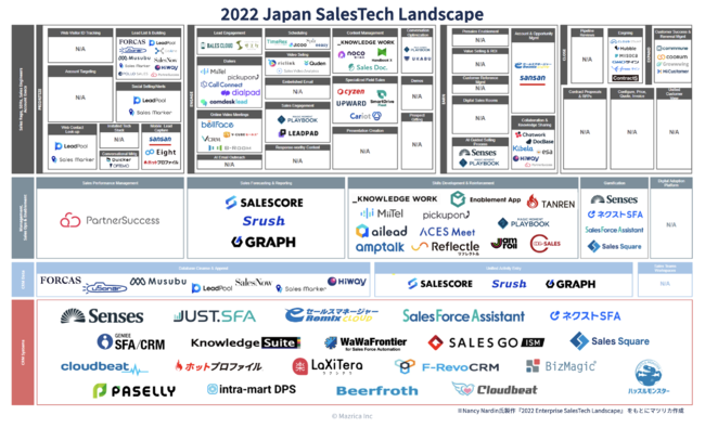 「Japan SalesTech Landscape」は、Nardin氏制作「2022 Enterprise SalesTech Landscape」(セールステック領域において、世界で最も支持を得ているカオスマップ)をもとに作成。