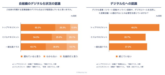上層部の方が「遅れている」と認識しているものの、デジタル営業に適応する必要性を感じていない。