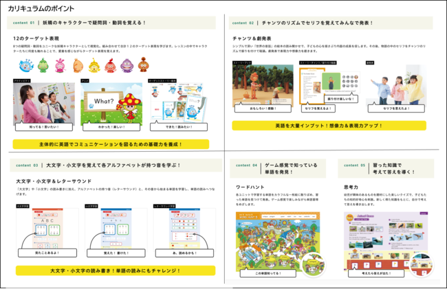 ECCジュニアでは、小学校の英語教科化に先立ち、「21世紀型スキル」と「グローバル・コミュニケーション能力」の養成をコンセプトに、小学生クラスの全レベルの教材改訂を2020年度までに行いました。小学生クラスがレベルアップされたことで、幼児の段階でやっておくべきことの見直しを図る必要が生じました。また、近年ICT(情報通信技術)教育や動画・アプリが急速に浸透し、子どもたちの英語への接触頻度や背景知識が高まっています。以上の理由から、幼児レベルのアップデートを図り、現代の子どもたちの将来に役立つECC幼児クラスを実現するための開発を行いました。