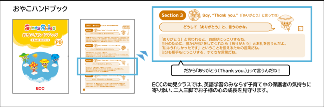 ・「おやこハンドブック」には、Say, "Hello." / Bring everything you need. など、英語での声掛けの仕方も併記しています※。