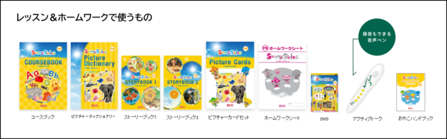 Sunny Skiesは、ECCに通ってくる子どもたちが楽しいだけではなく、その学習効果をしっかりと保護者の皆様が確認できるように作成しました。学習した表現や、劇発表のためのセリフは家庭学習で音声ペンを使って録音します。一緒に録音したり、録音したものを音声ペンで再生したりして、お子様の成長を確認してみてください。また、レッスンではメッセージを書くコーナーもあります。お子様から英語でメッセージが届くのを想像してみてください。とても温かな気持ちになりませんか。その他にもインタビューや絵本作りなど、お子様の成長を確認できるコーナーがたくさんあります。英語を通して成長していくお子様をぜひご覧ください。