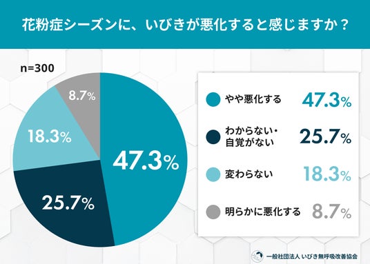 Q1:花粉症シーズンに、いびきが悪化すると感じますか?