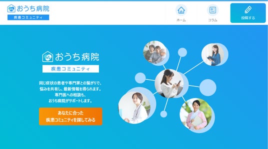 - 同じ疾患の悩みを抱えた患者同士で支え合う「疾患コミュニティ」も強化おうち病院では、オンライン診療での治療や薬の処方だけではなく、日常の生活から寄り添うことをコンセプトにして運営をしております。疾患の中には、認知症、うつ病、各種がん疾患、各種希少性疾患のように、治療や治療後に長く付き合っていかなければならない疾患もあります。そのような疾患の場合、日々の食生活や買い物、学校や職場での悩みなど、生活上のあらゆることに悩みが発生します。「おうち病院 疾患コミュニティ」では、このような日常生活上の悩みを同じ疾患を抱える患者同士で支え合っていくピアコミュニティとして運営しております。