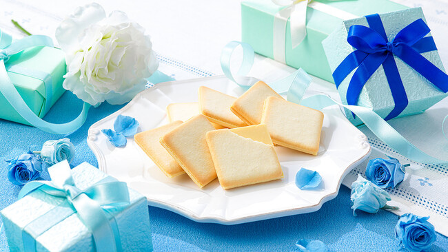 ブルーのリボンがデザインされたギフトにぴったりなパッケージです。