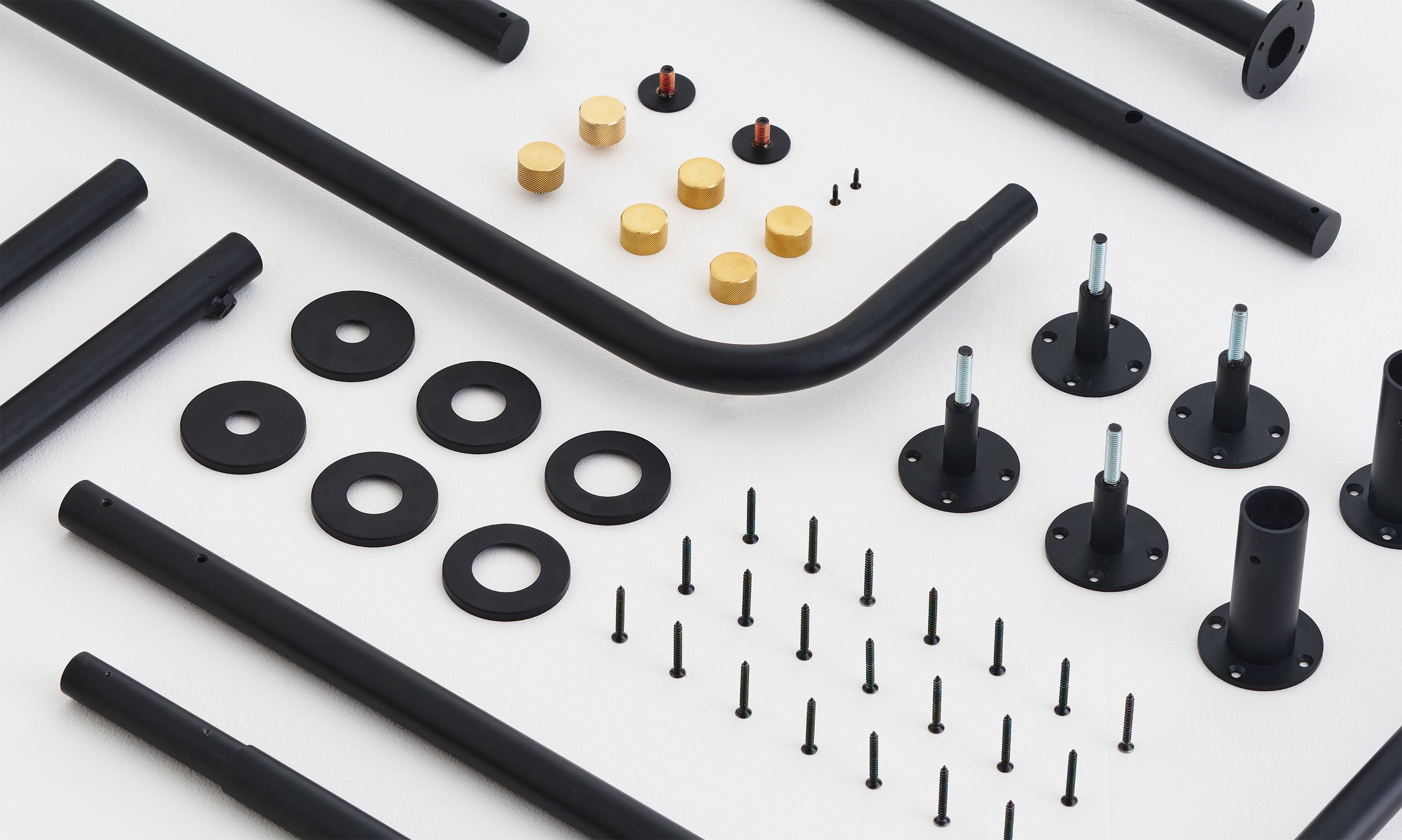 スチールパイプには粉体塗装を施し、手触りの良いマットな質感にこだわりました。ネジ部分には、真鍮製のパーツを組み合わせることでインテリアに馴染む上質な仕上がりになっています。