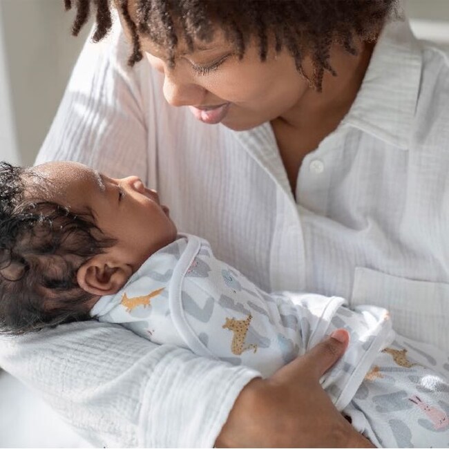 赤ちゃんを優しくしっかり包み、まるでおなかの中にいるような安心感を与えるスワドル。赤ちゃんのモロー反射をおさえ、ぐっすり眠ることができると言われています。ラップスワドルは面ファスナーを重ねるだけで簡単に赤ちゃんを包めるよう設計されたスワドルです。初めての育児や初めてスワドルをお使いになられる方にも簡単にお使いいただけます。足元がゆったりとしたデザインなので、赤ちゃんの脚が自然な形を保つことができ、股関節の発達を妨げません。