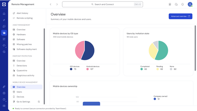 TeamViewer リモートマネジメントに統合されたモバイルデバイス管理ダッシュボード画面(出典:TeamViewer)