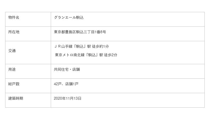 ◆「MFシェア 駒込レジデンス(譲渡制限付)」の概要