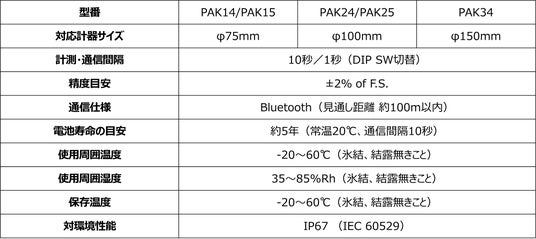 後付けで既存のアナログメータをIoT化する製品です。指針の中心軸に専用の磁石を取り付け、アナログメータのガラスを本製品のセンサヘッドに交換するだけで、計器点検のデジタル化を実現します。内蔵電池搭載のため、電気配線も不要。さらに、Zone1(危険度1区域)に使用できる本質安全防爆構造タイプ(PAK x5シリーズ)も用意されています。点検業務の省力化や遠隔監視用途で国内の大手工場に対し多数の納入実績があります。