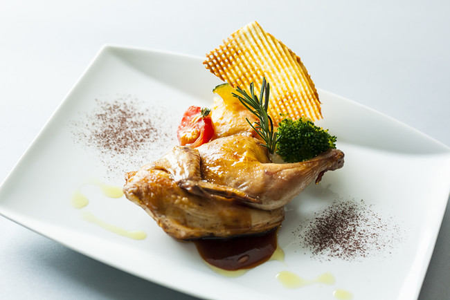 春の訪れを感じさせるグリーンピースやキャベツを使用した7種類の前菜を、個別に盛り付けたオードブルプレートや、サザンタワー名物のロティサリーチキンをカカオ風味に仕上げたメインディッシュで、いつでもバレンタインデー&ホワイトデーの気分をお楽しみいただけます。