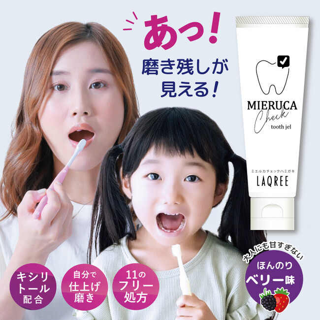歯磨きに悩むママたちが開発した、画期的な2way歯磨き粉「ミエルカチェックハミガキ」。