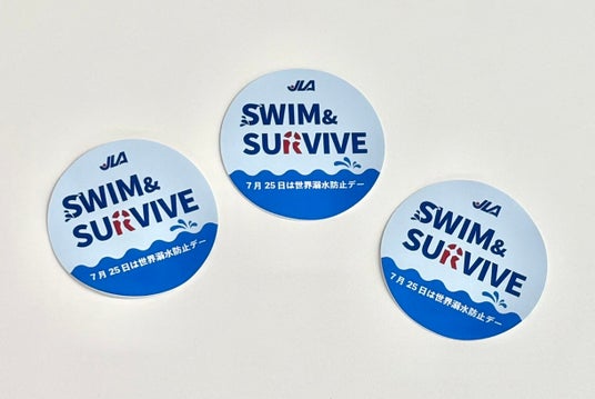 世界溺水防止デー啓発グッズ「Swim&Survive」ステッカー配布